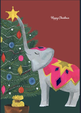Decorating the tree is easy when you can reach the top for the star! Say 'Happy Christmas' with this brightly coloured card. Paper card with cello and white envelope.