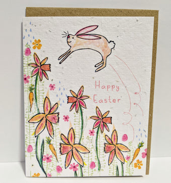 This cute Easter card features a sweet bunny illustration. All cards from artist and creator Hannah Marchant are made with seeds, making them plantable! Simply plant under a thin layer of compost, water, and watch the seeds germinate. This card contains wildflower seeds.