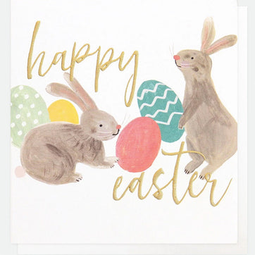 This sweet Easter card features a lovely illustration of two happy bunnies with colourful Easter eggs. A perfect way to celebrate the season!