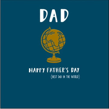 For the best Dad in the whole world! This Father's Day card features a golden foil globe on a deep blue background.