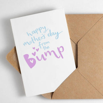 Happy Mother's Day From The Bump. A beautiful embossed and textured message to a proud mum to be. This letterpress printed Mother's Day card is blank inside, is printed on luxury card and comes with a quality kraft envelope.