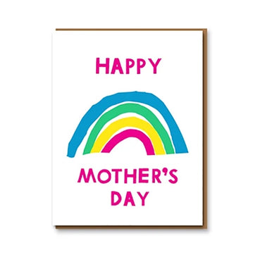 Happy Mother's Day. This rainbow letterpress printed Mother's Day card was created with a 1962 Heidelberg Windmill Platen with fluorescent pink foil, is blank inside and comes with a quality kraft envelope.