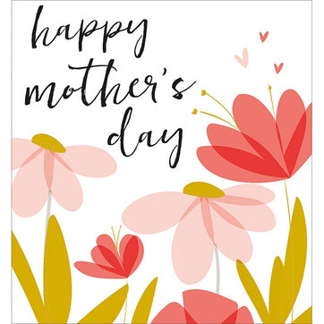 Happy Mother's Day. This Caroline Gardner flowers and pink hearts mother's day card is blank inside, is printed on low chlorine pulp from sustainable forests and comes with a quality white envelope.