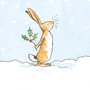 This eager little Nutbrown Hare is ready to share some Christmas love. Taken from the acclaimed children's book 'Guess How Much I Love You', this Anita Jeram illustration is sure to bring a smile and some much needed cheer this Christmas.