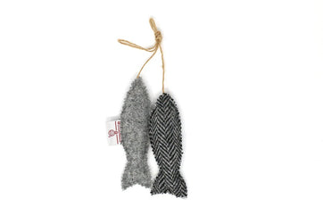 These cute fish decorations are handmade from Harris Tweed by artist Caroline Wolfe Murray in rural East Lothian. A perfect Scottish touch to any room!