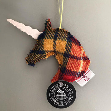 These sweet decorations depict the Scottish national animal - a unicorn! Each unicorn is handmade from Harris Tweed by artist Caroline Wolfe Murray in rural East Lothian. A perfect Scottish touch to any room!