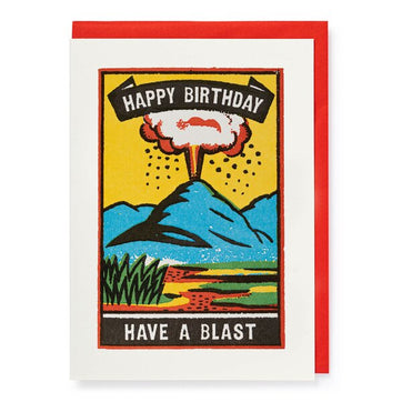 Inspired by vintage matchboxes, this explosive card makes a statement, perfect for any birthday. Made using traditional letterpress techniques, the design features a volcano in rich colours.