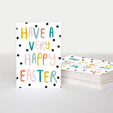 Spread the Easter cheer with these playful cards from designer Caroline Gardner, which read 'Have a Very Happy Easter' in colourful type over a spotted background. Each pack contains 10 cards of the same design.