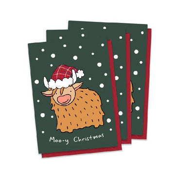 This pack of five mini Christmas cards, featuring a cute illustration of a wee highland cow, is perfect for sending to friends at school.