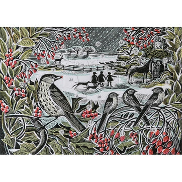 This delightful two-in-one product serves as both a thoughtful greeting and a charming advent calendar. Designed by the celebrated artist Angela Harding, the exquisite illustration is deeply inspired by the British countryside, showcasing the tranquil flora and fauna with a beautiful palette of soft greens, greys, and wintry blues.