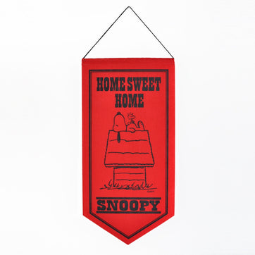 Everyone's favourite cartoon dog is here to stay! This red Vegan felt wall adornment features an adorable screen printed Snoopy illustration with the words "home sweet home" above. Also included is a rod and hanging string meaning this sensational Snoopy pennant is ready to go!