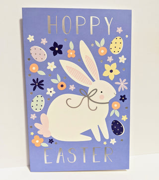 Send out your best wishes for the season with these lovely cards which read 'happy Easter' alongside a cute illustration of a happy bunny rabbit with eggs and flowers. Each pack contains 6 cards of the same design.