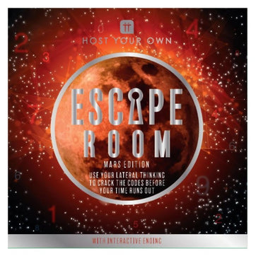 Escape to Mars before the asteroid hits planet Earth! You can host your very own escape room with this brilliant game box. Includes 47x Game Play Clues, 1x Instruction Booklet, 1 x Clue File, 1x Notepad, 1x Interactive Ending and a Photobooth Frame.