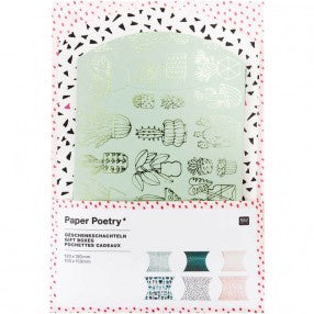 This sweet botanical set of pop up boxes has shiny foil detailing and makes great packaging for any small gifts or homemade crafts. There are two different sizes in each pack. 3 are 12x18cm and 3 are 10x15cm.