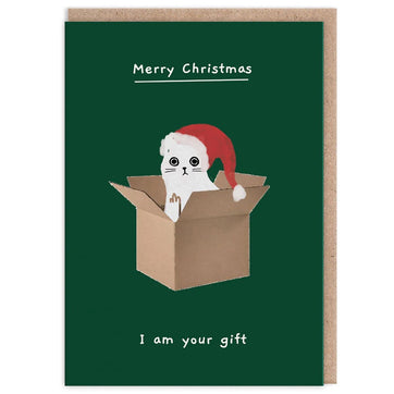 This heartwarming Christmas card is a delightful gift for any cat lover. The adorable illustration of a white cat wrapped as a present conveys a message of love, joy, and the preciousness of our furry friends. This Christmas card is blank inside and comes with a brown kraft envelope.