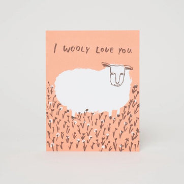 This lovely, illustrated card features a woolly sheep and a message of a lot of love. Perfect in peachy, pastel-pink to bring a smile this Valentines Day.