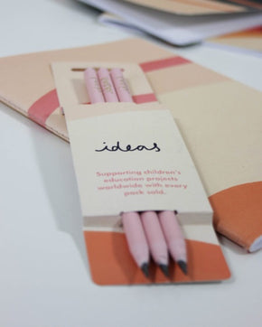 These gorgeous pencils from Vent For Change are made in Worcestershire from recycled CD cases. The sale of VENT pencils supports children’s education projects globally, making them eco-friendly and socially conscious. This pack comes in a lovely pale pink with three gold stripes - at the end of each pencil the word 'ideas' is embossed in gold.