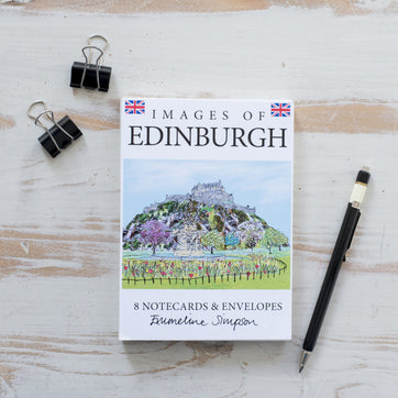 Set of 8 notecards from the wonderful Emmeline Simpson. Features two cards each of four designs - Edinburgh Castle, Holyrood Palace, The Royal Mile and Calton Hill. Each card also comes with a matching envelope.