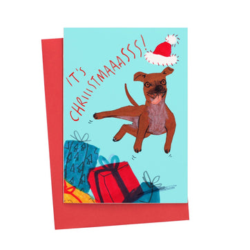 Share your seasonal enthusiasm with this lovely card, illustrated by Jo Clark. This card has been left blank inside for a personal message and comes with a festive red envelope. This card has been made in the UK.