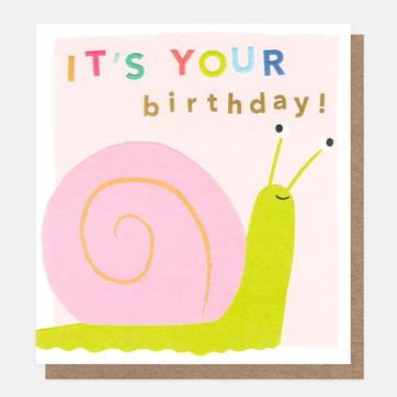 This splendid snail birthday card features gold foil and embossed lettering for that little extra birthday pizaz!