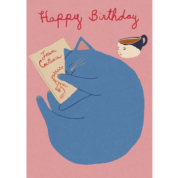 This petite birthday card features artwork from Holly Jolley of a little cat curled up with a book and a cup of tea - a perfect choice for sending your birthday wishes to a cat lover!