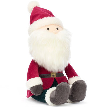 This Jellycat Jolly Santa is the perfect addition to your Christmas decorations. With its fluffy white beard, holly green trousers and bright red coat this mini Santa will bring a little Festive joy where ever it goes.