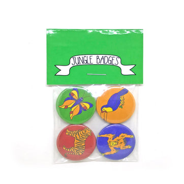 Enjoy monkeying around with these four jungle badges. This roarsome set includes a tiger, a butterfly, a toucan, and an orangutan. Great badges to decorate the lapel or bags of any animal lover or make a wild gift for someone else!