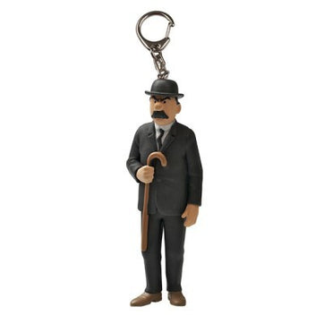 Plastic keyring of Thomson is classic outfit with walking stick.