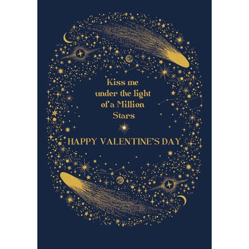 Kiss me under the light of a million stars. Happy Valentine's Day. This universally appealing gold die stamp Valentine's card is blank inside, is printed on 280gsm textured card and comes comes with a quality red envelope.