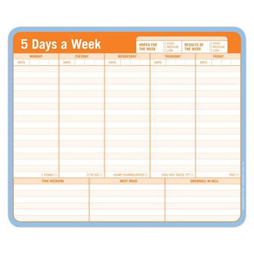 A clever paper version of your trusty mousepad. With a 5 day planner, and tear-off sheets to start fresh each week, this paper mousepad gives you the opportunity to keep your daily thoughts and weekly plans there at your right hand.