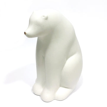 This cute polar bear would be a great addition to any Christmas decoration collection. This polar bear is made with white ceramic and has a gold nose.