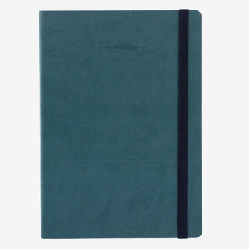 This high-quality notebook from Italian stationery designer Legami has 192 blank pages - ideal for notes or sketching. It includes a 12-page monthly planner, address book section, password pages, and archive pocket for loose pages. The cover is made from a soft PU leather, along with elastic closure and pen holder. This design features a handsome petrol blue coloured cover.