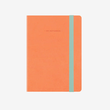 This high-quality notebook from Italian stationery designer Legami has 192 blank pages - ideal for notes or sketching. It includes a 12-page monthly planner, address book section, password pages, and archive pocket for loose pages. The cover is made from a soft PU leather, along with elastic closure and pen holder. This design features a beautiful salmon coloured cover with aqua blue elastic closure.