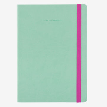 This high-quality notebook from Italian stationery designer Legami has 192 squared pages - ideal for notes or bullet journaling. It includes a 12-page monthly planner, address book section, password pages, and archive pocket for loose pages. The cover is made from a soft PU leather, along with elastic closure and pen holder. This design features a lovely aqua coloured soft cover with pink elastic closure.