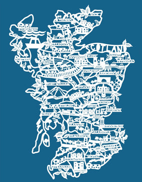 A classic and contemporary lasercut map, highlighting the sights of Scotland. Quirky and unique, this map is mounted on a green background and comes ready for framing. Showcasing locations from Stornaway to Galashiels, it’s perfect as a gift or souvenir.