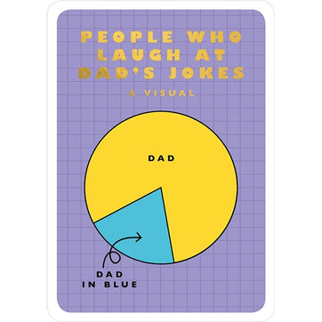 People who laugh at Dad jokes. A die-cut golf foil pie-chart that illustrates that only Dads laugh at Dad jokes.. This fathers day card is blank inside, is printed on 280gsm textured card and comes with a quality kraft envelope.