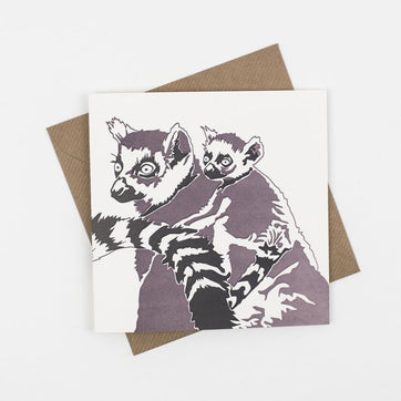 Made by Lizzie Parker of Penguin Ink, her letterpress colletion of cards is both simple and tactile. Produced on an original Heidelberg Platen printing press from the early 20th century, Liz's cards are printed on paper from sustainable forests milled in Italy. This ringtail lemur holding her baby on her back is a great card to show your mum you love her. It is also great to commemorate the arrival of a new baby into the family.