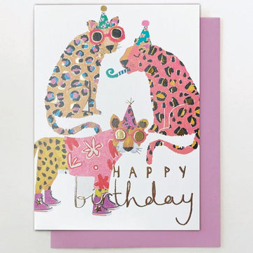 These cats are here to party. Printed on luxury Forest Friendly approved card, this gold foiled birthday card is blank inside and comes with a quality lilac envelope.