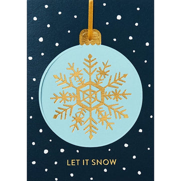 This seasonal snowflake card is also a gift as the recipient can pop out the bauble and hang it on their tree. This die cut gold foil Christmas card is blank inside, is printed on luxury card and comes with a satin ribbon and a quality envelope.