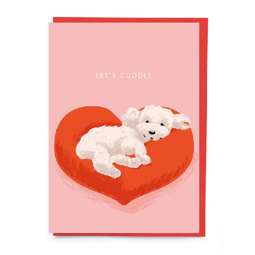 This heart-melting card features a gorgeous illustration of an adorable poodle, resting on a satin, heart bed. Perfect to let your special someone know you want to cuddle them this Valentine's Day.
