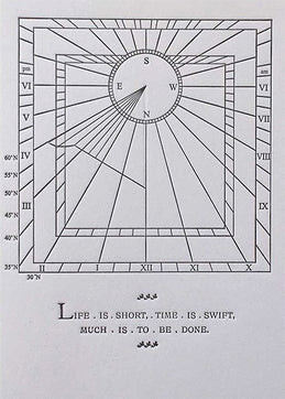 All sundials are enscribed with short pithy quotes usually on the theme of time and death. This sundial has "Life is short, time is swift, much is to be done"