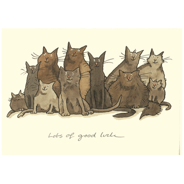 Nothing says good luck than a herd of smiling cats to cheer you on! This card is illustrated by Anita Jeram and is blank inside. Printed on Forest Friendly card, it comes with an address label and quality coloured envelope.