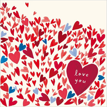Nestled within the largest heart is the simple, handwritten sentiment "love you," making it a clear and beautiful declaration of love. With its painterly textures and contemporary layout, it’s the perfect choice for the partner who brings a bit of colour to your world.