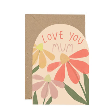A lovely curved card to celebrate your Mum, featuring flowers and the words 'Love You Mum' in pastel tones.