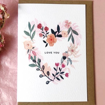 This bright and colourful floral wreath illustrated by Chloe Hall is a great way to make sure your love grows this Valentine's Day. This Valentine's card comes with an eco-friendly quality kraft envelope.