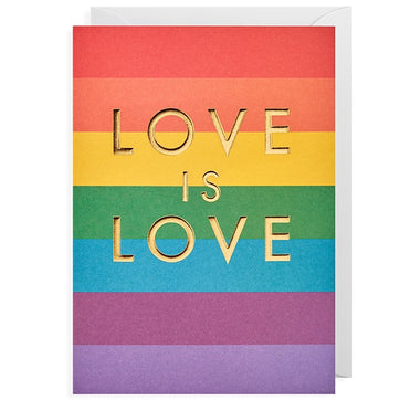 Love is Love. This bright and elegant card, printed on Munken 300gsm with a full colour foil stamp and emboss comes with a white envelope.