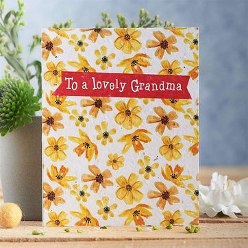 To a lovely grandma. A gift as well as a card as when you are finished you can plant the card and watch the flowers grow. This bright wildflower Mother's Day seed card is blank inside, is printed on paper embedded with wildflower seeds and comes with a quality kraft envelope.