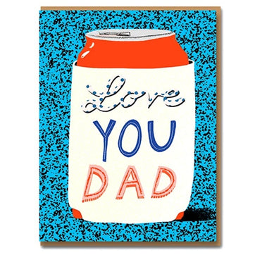 Love you dad This letterpress printed Father's Day card will help keep his can cool on the day and let him know how much you care. Printed on recycled card, blank inside and comes with a quality kraft envelope.