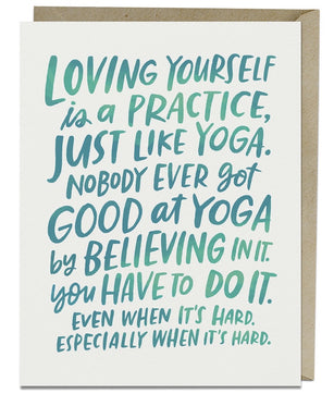Sometimes some friends just need a little pep talk, and this card from artist Emily McDowell says it straight - loving yourself is a practice.