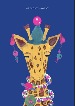 This giraffe knows how to celebrate your 'birthday magic', decked out in a fantastic and colourful party hat! Paper card with white envelope in cello